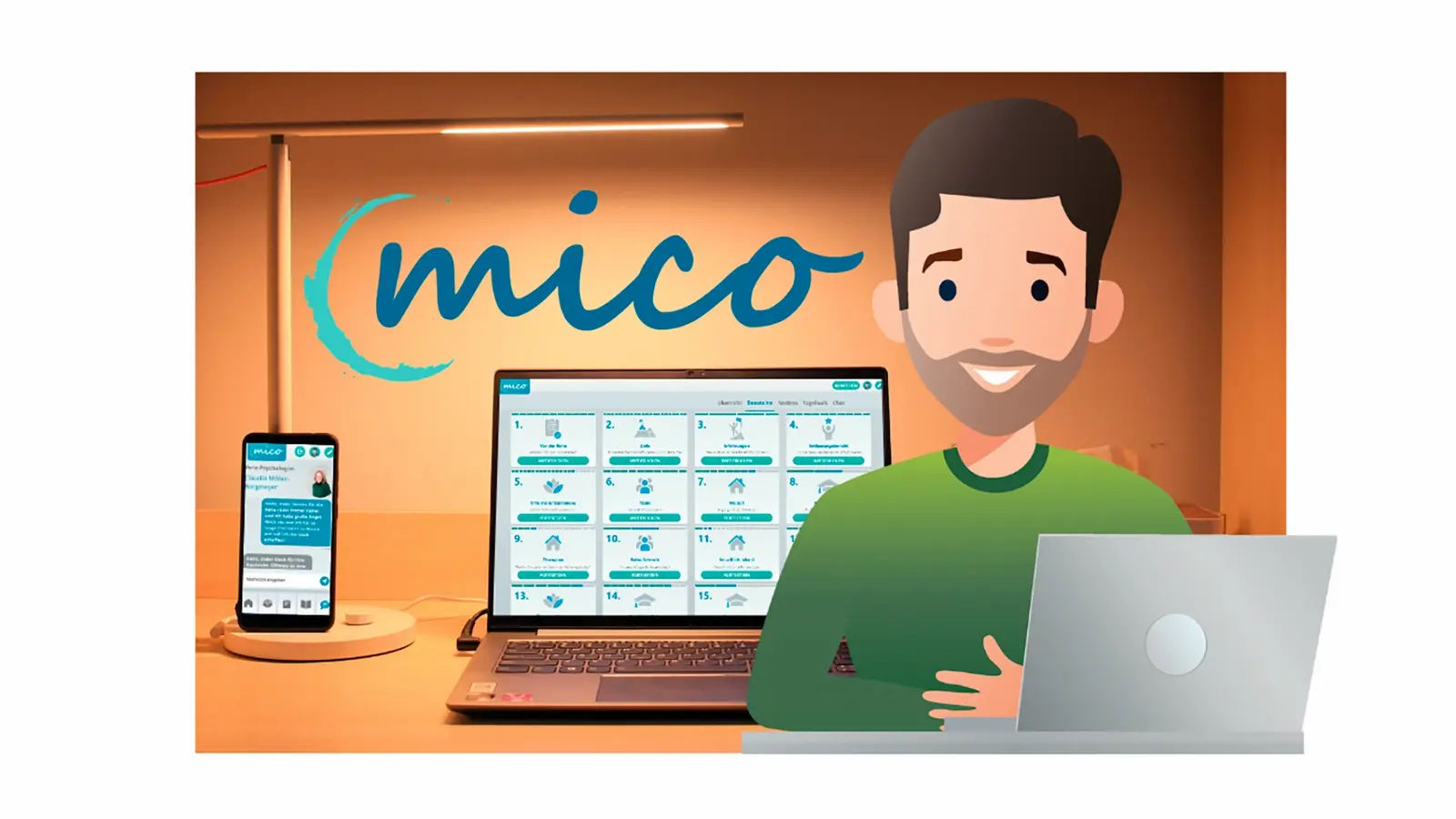 „Mico“ kombiniert dabei Informationen und motivierende Impulse mit persönlicher Beratung. Als modulares Angebot, das auch Check- und To-do-Listen enthält, hilft es bei der Definition der Reha-Ziele und beim Verstehen von Reha-Abläufen. Erfahrungsberichte anderer Rehabilitanden sind ebenfalls enthalten.
